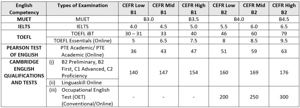 To participate in the competitions, you must be:1. An undergraduate or diploma student AND2. Have a MUET Band score of 3.5 or lower OR3. Fall within the *CEFR proficiency level of B1 or below.*Kindly refer to the table below to check for the CEFR B1 equivalent test scores.